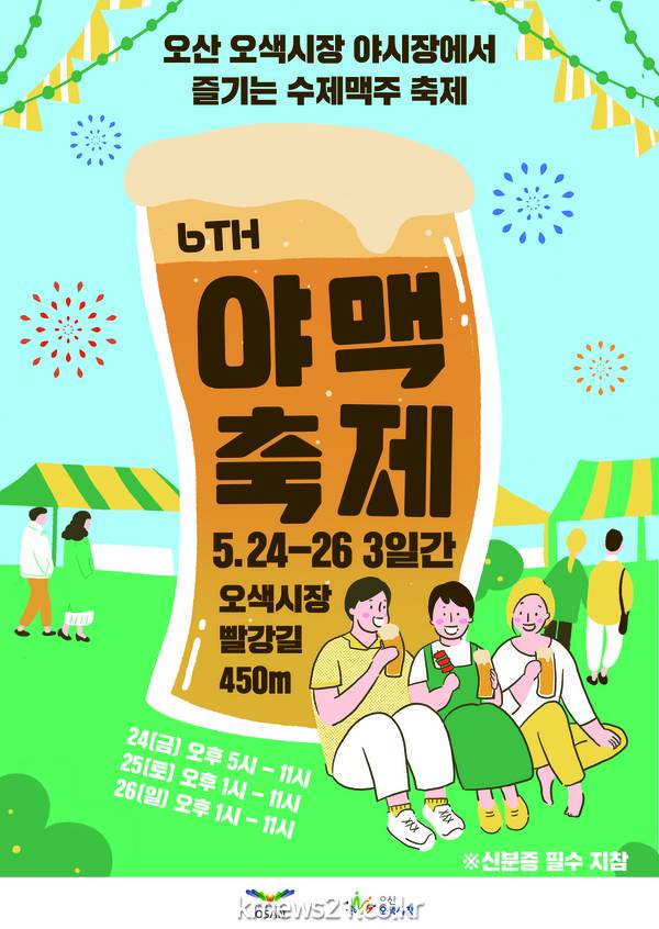 오산시(시장 곽상욱) 제6회 야맥 축제가 6만여 명의 수제 맥주 마니아들이 참여한 가운데 3일간의 일정을 마치고 5월 26일 오후 성황리에 막을 내렸다.