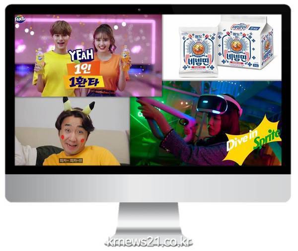 ▲ [사진= 한국 코카-콜라사 ‘1인 1환타’, 한국야쿠르트 ‘괄도네넴띤’, 한국 코카-콜라사 ‘다이브 인 스프라이트(Dive in Sprite)’, 청정원 ‘츄앤리얼 X 피카츄의 달콤한 만남’]