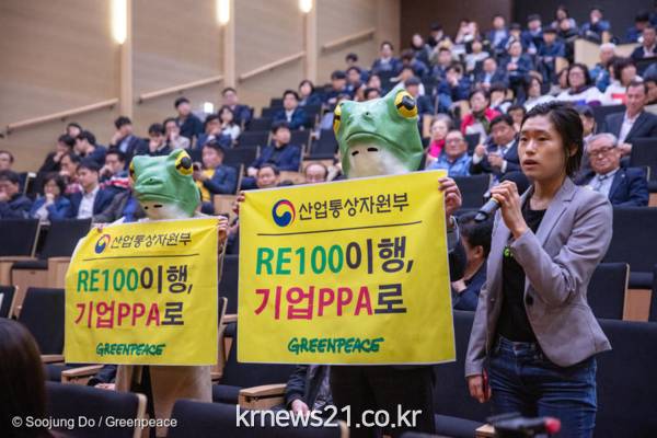 그린피스는 지구 온난화 대응의 일환으로 2015년부터 기업의 재생에너지 사용 확대에 대한 필요성을 지속적으로 알렸다. 특히 이번 해부터는 산업부에 기업 PPA 제도 도입을 본격적으로 요구해왔다. 올 상반기에는 국내 기업 PPA 제도 도입 공론화를 위한 국회 토론회를 개최했으며, 성윤모 산업통상자원부 장관 앞에서 청개구리 가면을 쓰고 기업 PPA 도입을 촉구하는 퍼포먼스를 펼치기도 했다.