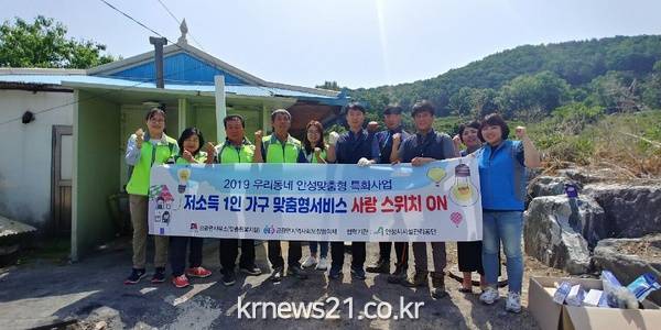 안성시 금광면 지역사회보장협의체(공동위원장 임길선, 황호건)는 지난 4일 ‘저소득 1인 가구를 위한 맞춤형서비스 사랑 스위치 ON 사업’을 진행했다.본 사업은 금광면 지역사회보장협의체가 ‘2019 우리동네 안성맞춤형 특화사업’에 선정되어 지원금 300만원을 받아 진행하고 있는 사업이다.세부사업으로는 밝은 빛을 보게 하여 생활불편을 해소하는 ‘LED 전등 교체’ 거동이 불편한 저소득 1인 가구에게 스위치 위치를 가까운 곳에 설치하여 건강과 안전을 지키는 스위치 ON 이웃주민 및 지역사회보장협의체 위원들이 대상자에게 관심과 안부확인을 함으로써 보호체계를 구축하는 ‘안부 톡톡’ 3개 사업이다.또한, 안성시 시설관리공단 ‘찾아가는 민간 서비스’ 업무팀의 재능기부로 함께 진행하고 있다. 공단 관계자는 “지역사회의 어려운 이웃들에게 건강과 안전한 생활을 할 수 있도록 적극 지원 하겠다”고 전했다.임길선 금광면장은 “늘 우리 주변을 살펴보고 힘들고 어려움을 느끼는 이웃들에게 도움을 주어 함께 행복한 금광면을 만들기 위해 최선의 노력을 하겠다”고 말했다.황호건 민간위원장은 “위험에 노출된 소외된 이웃들에게 조금이나마 건강하고 안전한 생활이 되었으면 한다”고 전했다.
