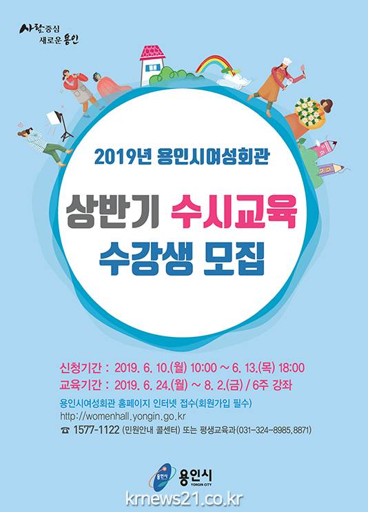 용인시 여성회관은 24일부터 8월 2일까지 6주간 단기과정으로 운영하는 상반기 수시교육 수강생 423명을 10일~13일 모집한다.