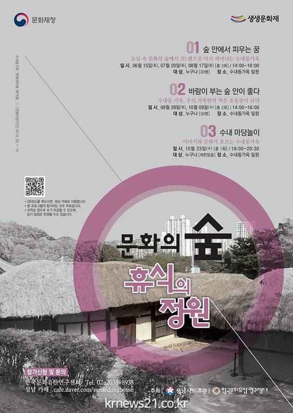 ‘문화의 숲-휴식의 정원 수내동 가옥’을 슬로건으로 한 세 가지 주제의 생생 문화재 활용사업이 펼쳐진다.