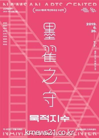 ▲ [사진=묵적지수 포스터]서울문화재단(대표이사 김종휘) 남산예술센터는 2019년 시즌 프로그램 세 번째 작품으로 달과아이 극단과 공동 제작한 ‘묵적지수(작 서민준/연출 이래은)’를 6월 26일부터 7월 7일까지 공연한다.