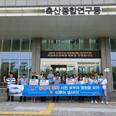 김제시 농업기술센터(김병철 소장)는 지난 17일 KTX 김제역 정차 홍보 및 서명을 받기 위해 농촌진흥청 국립축산과학원을 방문했다.