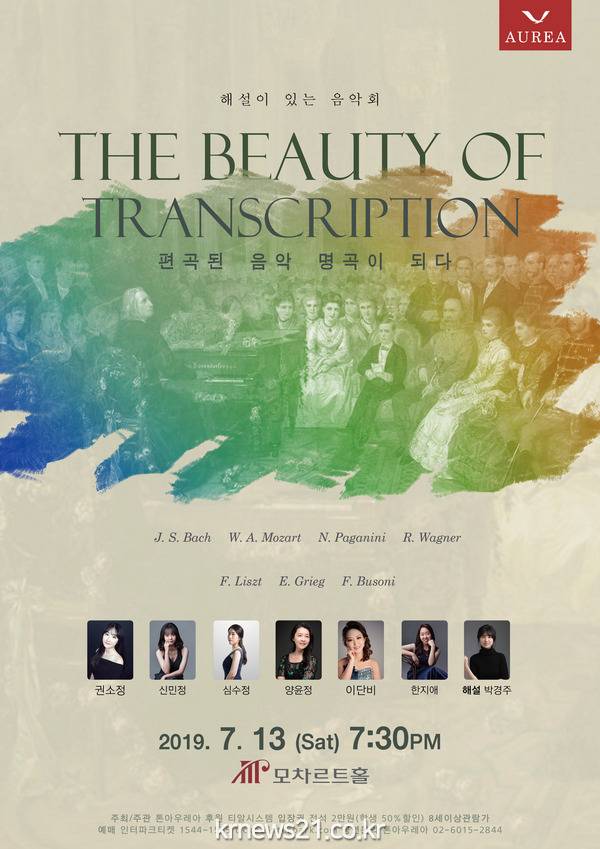 ▲ [사진=홍보포스터]오는 7월 13일, 톤아우레아는 해설이 있는 피아노 음악회 <편곡된 음악, 명곡이 되다(부제: The Beauty of Transcriptions)>를 개최한다. 서초동 모차르트홀에서 오후 7시 30분에 열리는 이번 공연의 주제는 피아노 편곡으로 피아노 독주와 두 대의 피아노 듀오 연주회로 기획되었다.