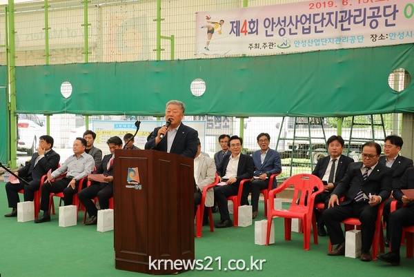 지난 15일 제2산단 내 안성시족구전용돔구장에서 제4회 안성산업단지관리공단 이사장배 족구대회가 성황리에 개최됐다.이날 우석제 안성시장을 비롯하여 신원주 안성시의회의장, 도의원, 시의원 기관·단체장들과 입주업체 대표자 및 선수, 근로자 가족 등 300여명이 참석한 가운데 상호간의 소통과 화합을 다지는 축제의 장이 되었다.이번 대회는 안성산업단지관리공단 주최ㆍ주관으로 총 25개 팀이 참여하여 1부· 2부로 나누어 조별 리그전을 거쳐 토너먼트로 우승팀을 가렸다.1부 우승은 (유)한국키스톤발부A, 준우승은 안성시시설관리공단, 공동3위는 ㈜삼양컴텍A·환인제약(주)A가 차지했으며, 최우수선수상은 (유)한국키스톤발부A 이대선 선수, 우수선수상은 안성시시설관리공단 이정우 선수에게 돌아갔다.2부 우승은 (주)케이엠A 준우승은 (주)케이엠B 공동3위는 안성시청·(주)삼양컴텍B 최우수선수상은 (주)케이엠A 정일용 선수 우수선수상 (주)케이엠B 정기관 선수가 차지했다 우석제 안성시장은 이번 행사가 안성산단의 발전과 즐거운 일터문화 조성을 위한 소통과 화합의 시간이 되길 바란다면서 기업하기 좋은 도시, 근로자들이 즐겁게 일할 수 있는 안성을 만들 것이라고 말했다.한영세 이사장은 관리공단 직원 모두가 신뢰와 사랑을 받는 관리공단으로 거듭 나도록 최선을 다하겠다고 전했다.