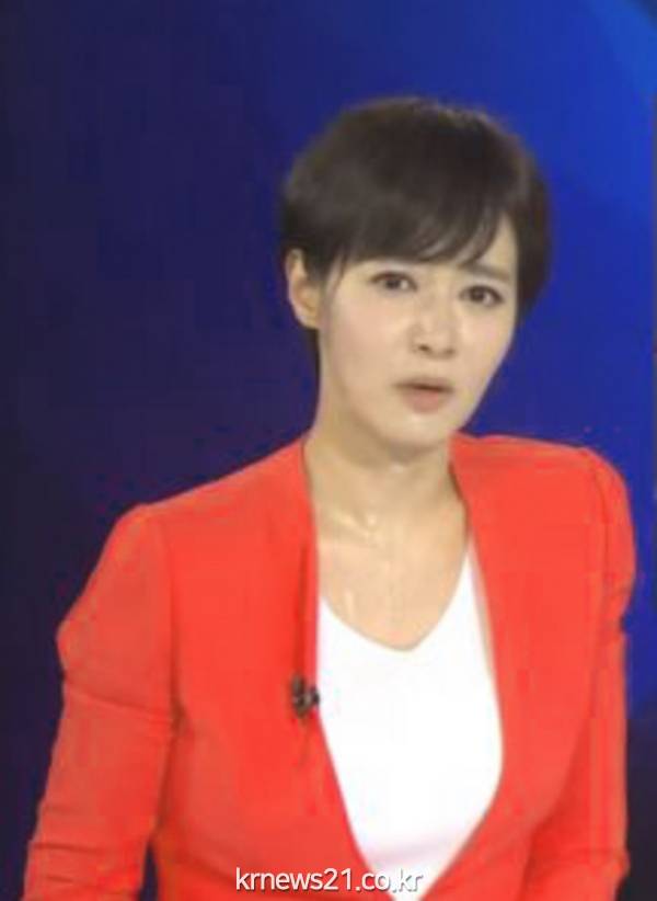김 앵커의 땀이 흘러 머리가 흥건히 젖고, 조명에 반사된 땀이 화면에 그대로 비칠 정도로 그녀의 상태는 안좋아보였다.