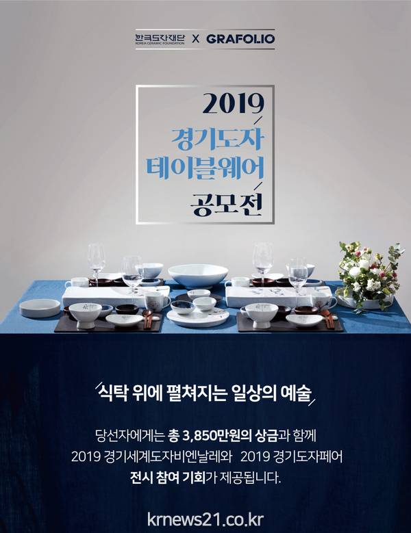 참가자는 그라폴리오 회원 가입 후, 그라폴리오 내에 개설된 ‘2019 경기 도자 테이블웨어 공모전’ 페이지에서 우리 도자를 활용해 연출한 식 공간 이미지 업로드 등을 통해 참여할 수 있다.