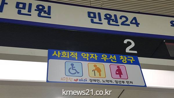 사회적 약자 전용 창구는 장애인, 노약자, 임산부를 맞는다.