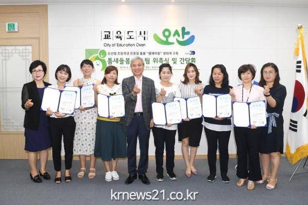 오산시(시장 곽상욱)는 6월 26일 시청 집무실에서 오산형 온종일 돌봄 “함께 자람” 생태계 구축 사업 일환으로 추진되는 [틈새 돌봄 연구팀 위촉식 및 간담회]를 가졌다.