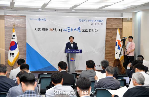 임병택 시흥시장이 1일 오전11시 시흥시청 글로벌센터에서 민선7기 출범 1주년