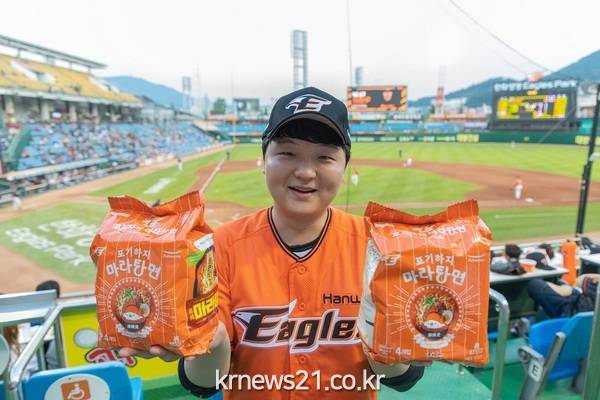 한편, 5일 한화이글스와 KT위즈 경기 시작에 앞서 풀무원식품 박남주 대표는 시구, ‘포기하지 마라탕면’을 기획한 신입사원 이기욱 PM(Product Manager)은 시타를 했다. 풀무원에서 34년 근속한 박 대표는 등번호 34번, 입사 1년 차인 이 PM은 1번이 새겨진 유니폼을 입고 나섰다. 박 대표는 이 PM에게 “힘든 사회생활이지만 끝까지 포기하지 말고 뜻한 바를 꼭 이루길 바란다”며 “한화이글스도 불꽃 같은 열정으로 이번 시즌 끝까지 선전하기를 기원한다”고 전했다.