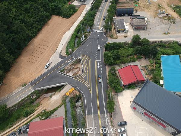 이에 시는 1억9000만원의 사업비로 하천 일부를 복개해 대형차량 회전에 필요한 공간을 확보하고, 차량의 경로를 명확히 알 수 있도록 차로를 구분하는 공사를 했다.