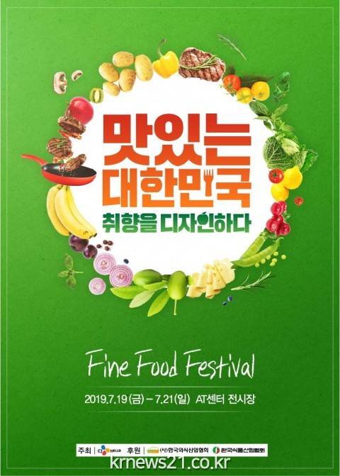 ▲ [사진=홍보포스터]소비자의 LIFE STYLE과 NEEDS 그리고 식품소비 TREND를 반영한 식품산업 전시회인 ‘2019 Fine Food Festival’이 2019년 7월 19일(금)부터 21(일)까지 3일간 서울 양재동 aT센터에서 개최된다.