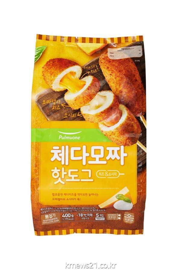 ‘풀무원 체다모짜핫도그’는 체다와 모짜렐라 2가지 치즈에 탱글한 소시지를 넣어 한번에 3가지 맛을 즐길 수 있다.고소하고 짭조름한 체다 치즈의 풍미가 퍼지면서 쫄깃한 모짜렐라 치즈와 육즙이 가득한 탱글한 소시지가 즐거운 식감을 더해준다.또 체다 치즈에 스트링 기술을 적용해 모짜렐라 치즈처럼 쫄깃한 식감으로 즐길 수 있다.