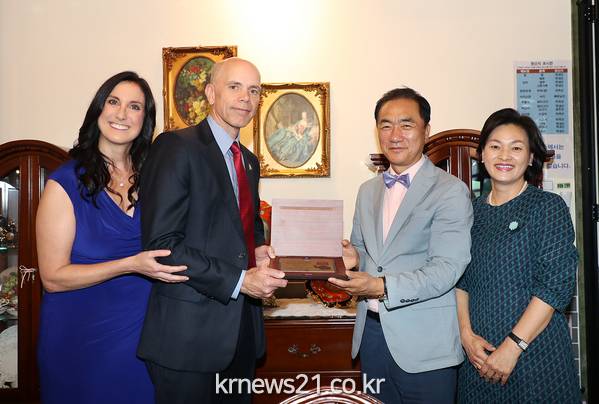 정장선 평택시장은 지난 12일 유엔사 부사령관 내외가 함께 참석한 가운데 유엔사 부사령관 웨인 D. 에어 중장에게 명예시민 패를 수여했다.