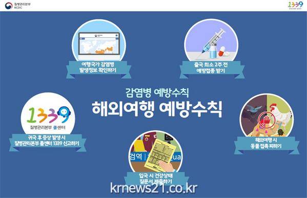 해외여행 계획이 있는 여행자는 출국 전 질병관리본부 홈페이지에서 방문 국가의 감염병 발생 정보 및 예방법 등을 확인해야 하며 출국 2~4주 전에는 예방접종을 받고, 예방약도 꼭 지참해야 하는 것도 유의해야 할 사항이다.