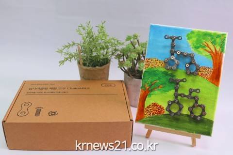 체인어블은 폐자전거의 체인을 이용해 학생들이 원하는 모형을 만들고, 캔버스에 전시해 업사이클링 작품을 만들어 낼 수 있는 교구이다. 거리에서 볼 수 있던 자전거가 업사이클링 작품으로 변하는 과정을 체험하며 학생들은 업사이클링을 친밀하게 느끼고, 환경 감수성을 키울 수 있다.