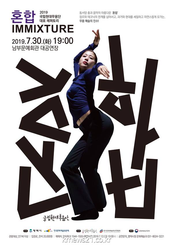 평택시(시장 정장선)는 오는 30일 오후 7시 남부문화예술회관 대공연장에서 ‘2019년 문예회관과 함께하는 방방곡곡 문화 공감 사업’ 국립현대무용단 ‘혼합’을 공연한다.