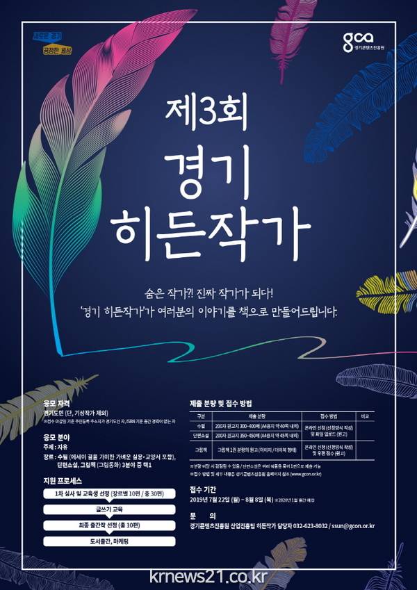 ‘제3회 경기 히든 작가’ 원고 공모와 관련한 자세한 사항은 경기콘텐츠진흥원 홈페이지(www.gcon.or.kr)를 통해 확인할 수 있다. 문의는 경기콘텐츠진흥원 산업진흥팀 경기 히든 작가 담당자(ssun@gcon.or.kr / 032-623-8032)로 하면 된다.