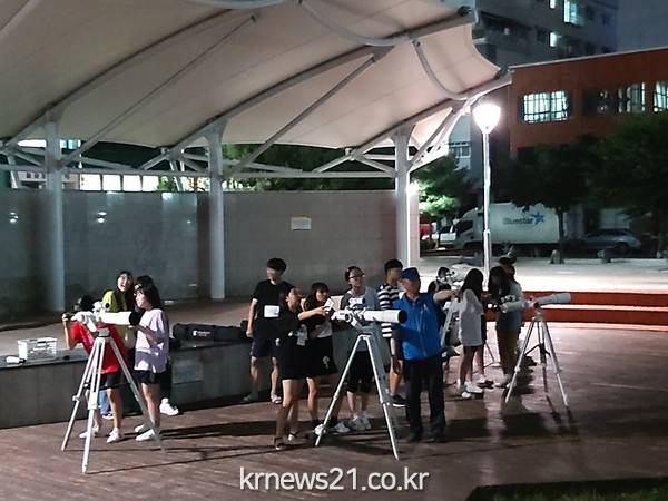 참석한 청소년들은 스스로 협동해서 만든 프라네타리움 안에서 천문대장의 상세한 설명을 들으며 별자리와 천체에 관한 원리를 익히고 천체망원경을 직접 조립하고 조작하며 망원경의 구조와 원리를 익히고 관측해 보는 특별한 시간을 가졌다.