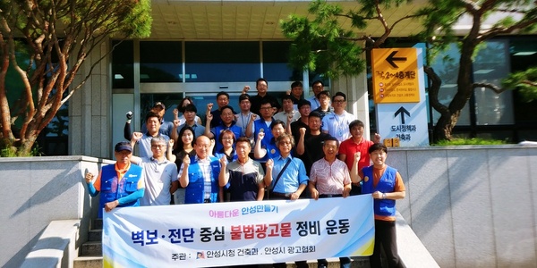 안성시는 9일 오전 9시부터 안성시 광고협회와 함께 공도읍 양성면 등의 서부권 시가지 주요 교차로에 불법 게시된 벽보와 전단지에 대한 민관 합동 일제 정비를 실시했다. 시는 그동안 현수막에 집중된 정비활동으로 인해 상대적으로 정비에 소홀했던 벽보와 전단지 광고물들이 최근 관내 주요도로 교차로에 난립하여 관내 옥외광고질서 정립과 도심지 경관 개선을 위해 진행하게 되었다. 이날 광고협회와 시청 직원 25명은 공도읍 양성면 등 서부권 시가지 주요 교차로에 불법 게시된 벽보와 전단지 등을 집중 제거했다. 시 관계자는 민관 합동 일제 정비로 안성 도심지 경관이 개선 될 것이라면서 불법광고물 정비를 지속적으로 추진할 것이라고 밝혔다.