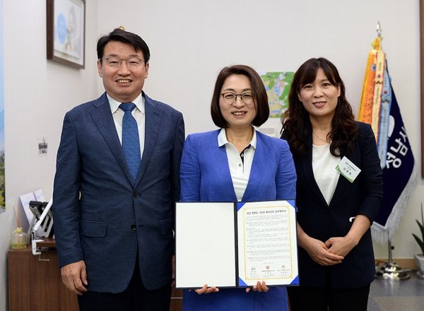 성남시는 8월 22일 오전 10시 시장 집무실에서 은수미 성남시장과 조경연 생명보험사회공헌재단 상임이사, 신명희 중원노인종합복지관장 등이 참석한 가운데 ‘성남시 생명숲 100세 힐링센터 설치·운영’에 관한 업무협약을 했다.