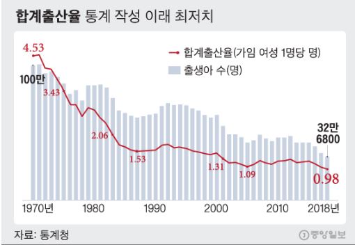 지난해 우리나라에서 태어난 출생아 수가 역대 최저치를 기록했다. 국제 비교 기준으로도 활용되는 출산율 지표를 보면경제협력개발기구(OECD) 국가 중에선 여성 1명이 평생 아이를 한 명도 안 낳는 것으로 집계된 유일한 나라다.