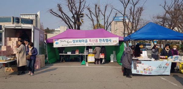 ▲ 지난 1월 여수시청 민원실 앞에서 열린 ‘설맞이 정보화마을 특산품 할인 판매 행사’ 모습