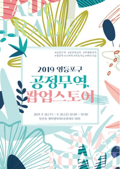 서울 영등포구가 18일부터 20일까지 공정무역 제품을 구매할 수 있는 ‘공정무역 팝업스토어’ 행사를 당산동 엠티엠타워 1층 야외 전시장에서 개최한다.