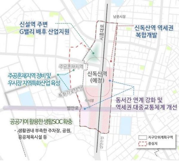 또, 서울시의 ‘중심지 육성방안’과 발맞춰 신안산선 ‘신독산역’ 일대 역세권 복합개발을 위한 지구단위계획 재정비를 추진, ‘독산지구 중심지’ 복합개발을 통해 G밸리 및 독산생활권 배후 지원기능 강화와 동.서간 균형 있는 도시발전을 도모한다.