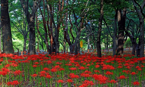 꽃무릇은 큰 나무 아래 반그늘에서 잘 자라며, 한 번 뿌리 내리면 알뿌리가 계속 분근돼 군락지가 매년 무성해진다.