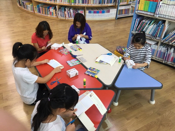 독서의 달을 맞이하여 책놀이 중인 충북 영동군 레인보우영동도서관