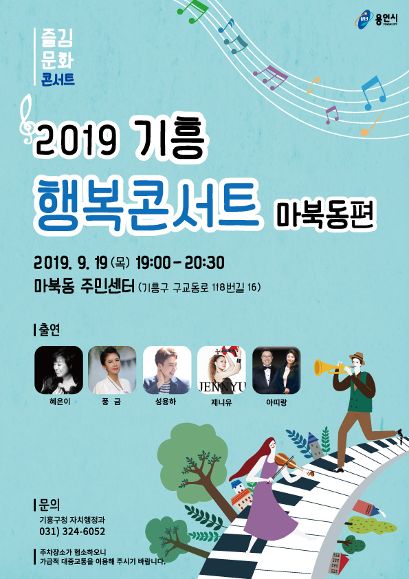 한편, 지난 2010년부터 열어 온 기흥 행복콘서트는 매회 900여 명 이상의 관람객이 찾는 등 주민들에게 큰 사랑을 받는 지역의 대표 문화공연이다.