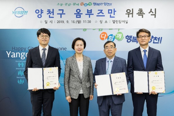 양천구(구청장 김수영)가 지난 16일(월) 구민들의 고충 민원을 해결하고 구정 전반의 투명성을 높이기 위해 ‘양천구 옴부즈만’을 위촉, 운영에 나선다.