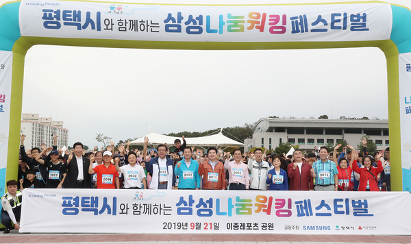 평택시(시장 정장선)와 삼성전자(주)가 함께 추진한 ‘삼성 나눔 워킹 페스티벌’이 지난 21일 이충 레포츠공원에서 성황리에 개최됐다.