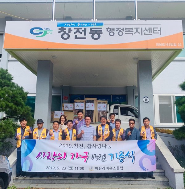 이천라이온스클럽(회장 권오성)은 23일 창전동행정복지센터를 방문해 사랑의 가구 13점을 전달했다.