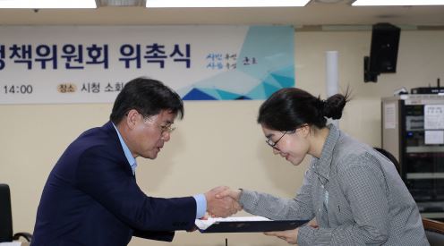 30일 한대회 경기 군포시장이 ‘청년정책위원회’를 발족하고 발촉하고 위촉장을 수여하고 있다.