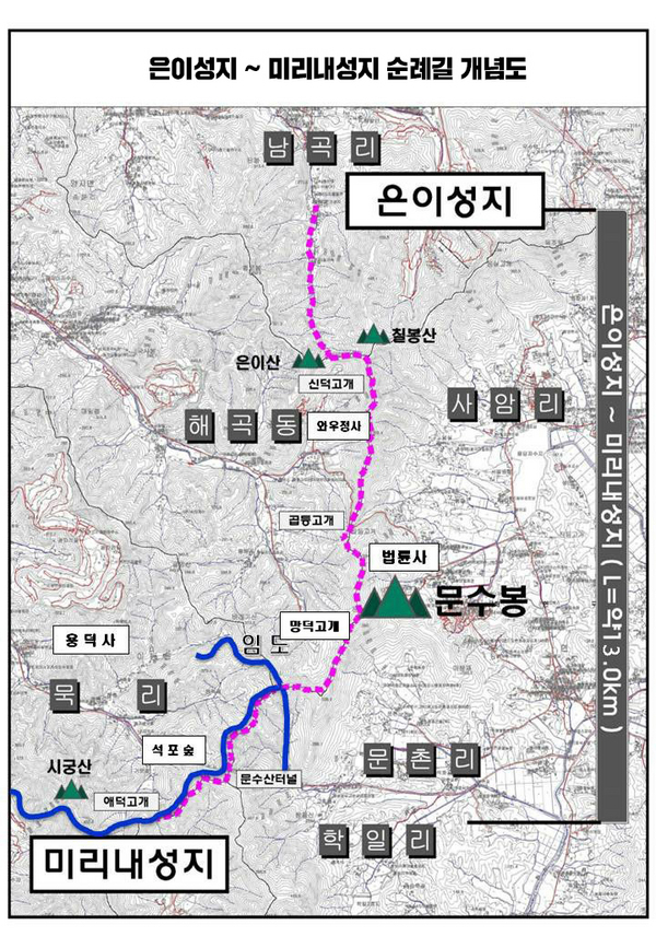 이와 관련해 시는 올해 1억 원을 투입해 은이 성지~와우정사 구간을 먼저 정비하고 내년에 4억 원의 예산으로 와우정사~애덕 고개~미리내성지 구간의 순례길을 조성할 방침이다.