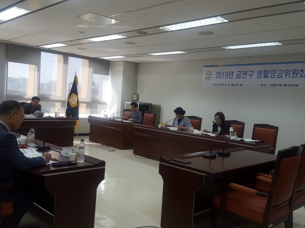 ▲ 지난달 24일 개최된 금천구 생활임금위원회 심의 모습