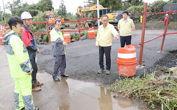 ❍ 급경사지 사면붕괴위험지역, 도시계획도로 개설 공사장, 하천정비사업장 등을 방문하여 안전관리 실태를 점검하고, 거듭되는 호우와 태풍으로 인해 지반이 많이 약해져 있으므로 안전관리에 더욱 더 대비해 달라고 당부하였다.
