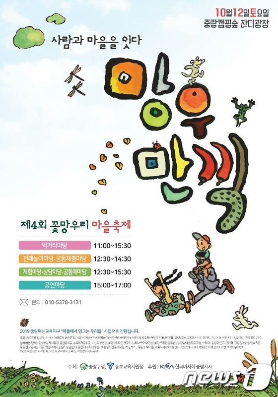 중랑구(구청장 류경기)는 오는 12일 오후 1시부터 중랑캠핑숲 잔디광장에서 주민과 학생 2,000여 명이 참여하는 ‘제4회 꽃망우리 마을축제 망우만끽’(부제: 사람과 마을을 잇다)을 연다.