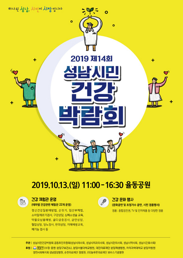 이날 행사는 성남시민 건강박람회 공동추진위원회가 주최·주관하고, 성남시가 후원해 마련된다.