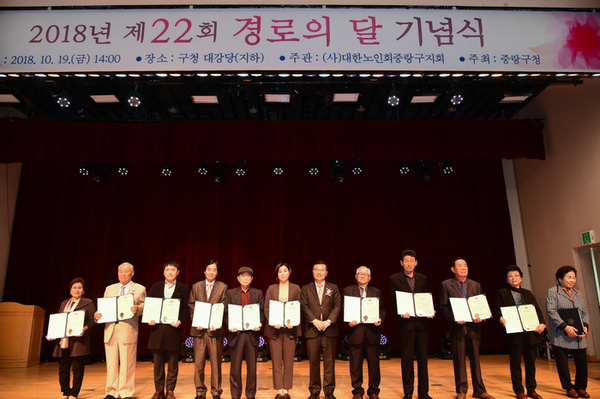 특히, 이날 행사에서는 소외된 지역사회 어르신들을 위해 직접 밑반찬을 만들어 배달해 드리고 있는 조남례(면목본동)씨, 저소득 어르신 장수사진 촬영 등 적극적인 어르신 지원 활동을 해 온 서일대학교 학생지원처(단체) 등 노인복지 향상을 위하여 묵묵히 봉사해 온 주민(단체) 19명에 대하여 노인복지 유공 표창장을 수여해 의미가 깊다.