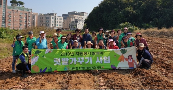 안성시 대덕면에서 지난 11일 기관・사회단체가 함께 참여하는 자원봉사 릴레이 텃밭 가꾸기 사업으로 고구마 수확행사를 가졌다.