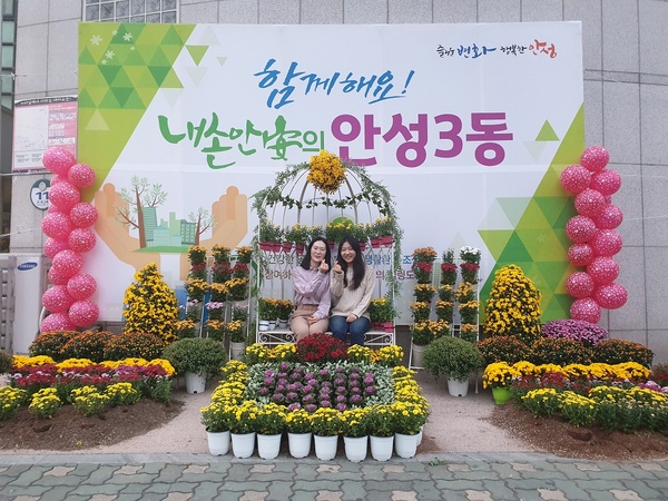 안성시 안성3동은 지난 18일 함께해요! 내 손 안(安)의 안성3동 활동으로 함께해요! 내 손안의 안성3동 포토존 을 주민센터 앞에 만들었다. 이번 포토존은 가을을 맞이하여 시민들에게 소중한 추억을 남길 수 있도록 국화꽃 등을 이용하여 제작됐다. 포토존을 이용한 시민은 얼마 전 조성된 금석천의 국화꽃길도 너무 예쁘고, 포토존에서 예쁜 사진도 찍을 수 있어서 너무 좋다고 말했다. 박종철 동장은 인근 주민들이 포토존에서 소중한 사람과 행복한 추억을 남겼으면 좋겠다면서 앞으로도 꾸준히 내 손 안(安)의 안성3동 운동을 통해 깨끗하고 아름다운 도심 속 힐링 공간을 제공할 것이라고 전했다.