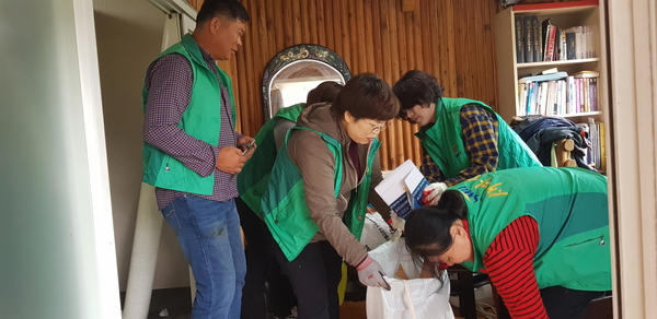 ▲ 여수시 직장‧공장 새마을회(회장 김승일)가 지난 17일 둔덕동 저소득 취약가정을 찾아 싱크대교체, 전기판넬 설치, 도배‧장판 등 주거환경 개선 활동을 펼쳤다. 이번 봉사에는 둔덕동 새마을부녀회원과 둔덕동 직원 등 15명이 동참해 힘을 보탰다.