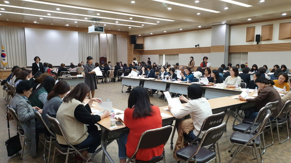 ▲ 지난 24일 오후 여수시청 회의실에서 어린이집원장, 보육교사, 학부모 등 150여 명이 참석한 가운데, ‘보육정책 기본계획 수립 연구용역 공청회’에 열렸다. 이날 참석자들은 ‘국공립어린이집 증설 관계’, ‘보육교사의 처우 개선 ’, ‘영유아 전용놀이공간 설치 확대’ 등을 주문했다.