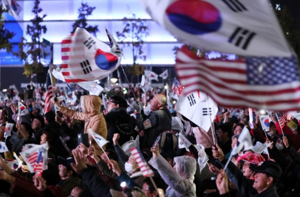 보수 단체와 지지자들이 25일 서울 도심에서 대규모 집회를 열고 문재인 대통령의 하야를 촉구했다.