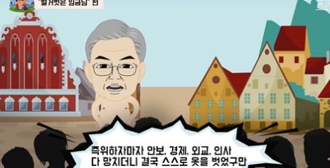 자유한국당이 만든 애니메이션 영상에 문재인 대통령을 안데르센의 동화 속 ‘벌거벗은 임금님’에 빗대 희화화한 모습이 등장해 논란이 일고 있다. 청와대와 더불어민주당은 즉각 반발했다